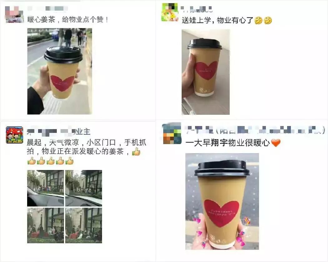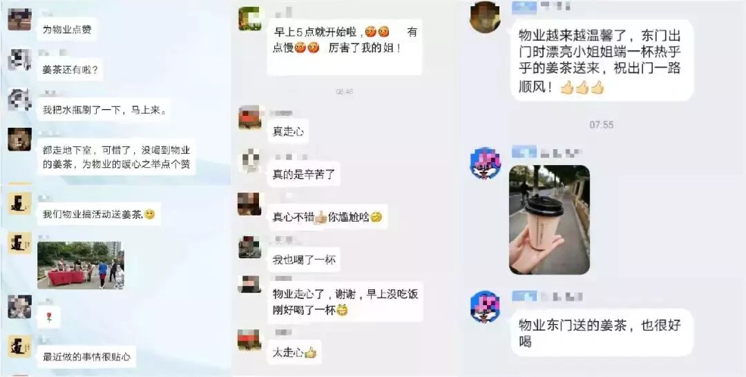 “物业的工作人员考虑的很细心,寒冷的天气正需要一杯暖暖的姜茶暖暖身”,一杯姜茶,暖一颗心。业主的鼓励是我们工作的动力,虽然天气寒冷,但是暖意在彼此之间流动,驱散了冬日的寒冷,也拉进了彼此之间的距离。