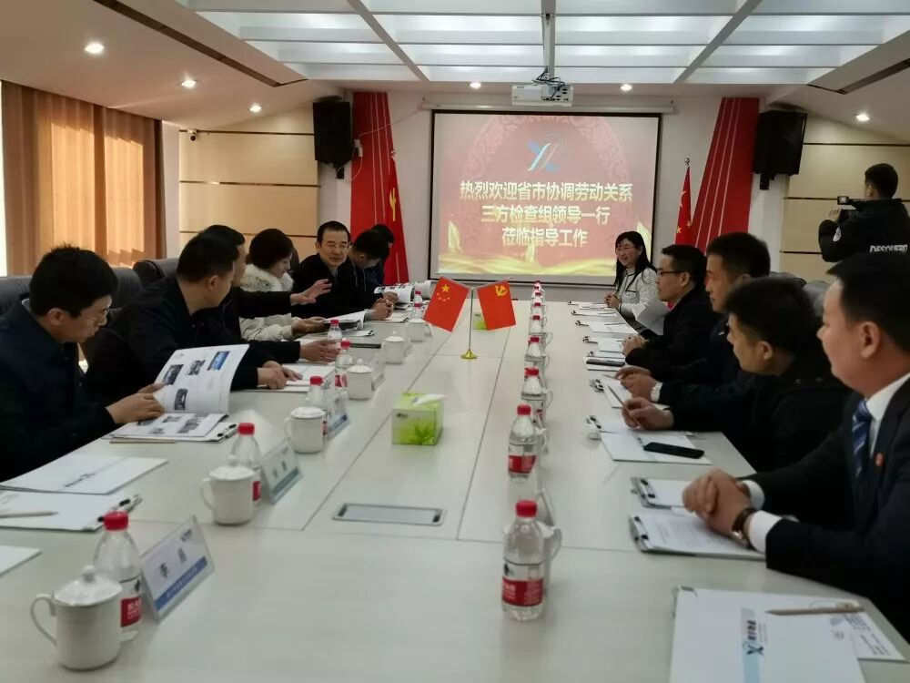 12月12日,省企联、企业家协会秘书长周磊,省总工会女职工部一级主任科员姜良芝,省工商联会员处干部侯东雨组成的督导检查组,在枣庄市总工会副主席范晓兵,滕州市总工会党组书记、常务副主席杨其朝,党组成员、副主席龙长松,荆河街道党工委副书记、办事处主任赵联喜,人大工作室主任王宜军,滕州市翔宇物业董事长张惠,总经理徐国锋,副总经理张为平等领导的陪同下,莅临翔宇物业对2019年翔宇物业工会集体协商工作督导检查。