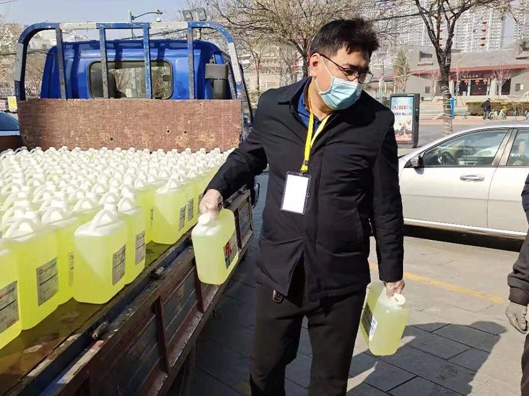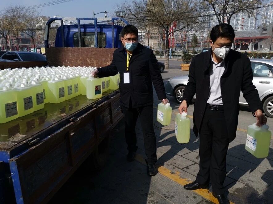 带着千方百计采购到的酒精、消毒液等防疫物资,