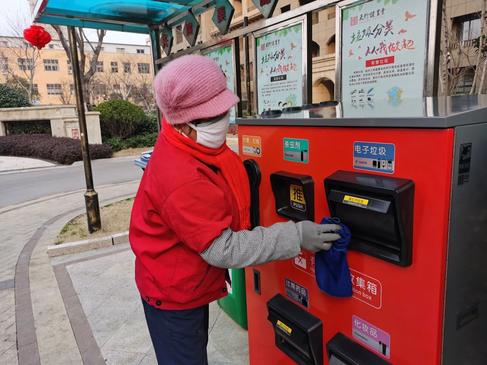 防疫期间,摘口罩前后做好手卫生,废弃口罩放入垃圾桶内,每天两次使用75%酒精或含氯消毒剂对垃圾桶进行消毒处理。