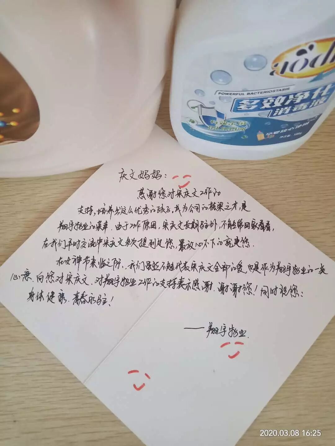 李开名爱妻:序芳亲爱的,今天是我的节日,很开心收到老公工作单位快递来的爱,好感动,此刻你依然不在我的身边,每天忙碌的你都能记得每天给我一通不痛不痒的电话,这让我很欣慰,在家里带孩子虽然辛苦,想想你为了这个家也付出了这么多,我感觉一切都值了,亲爱的,在外要记得照顾好自己,你的老是嗓子疼,记得平时多喝水。好了,就这么多吧,等你回来,我们悄悄说。